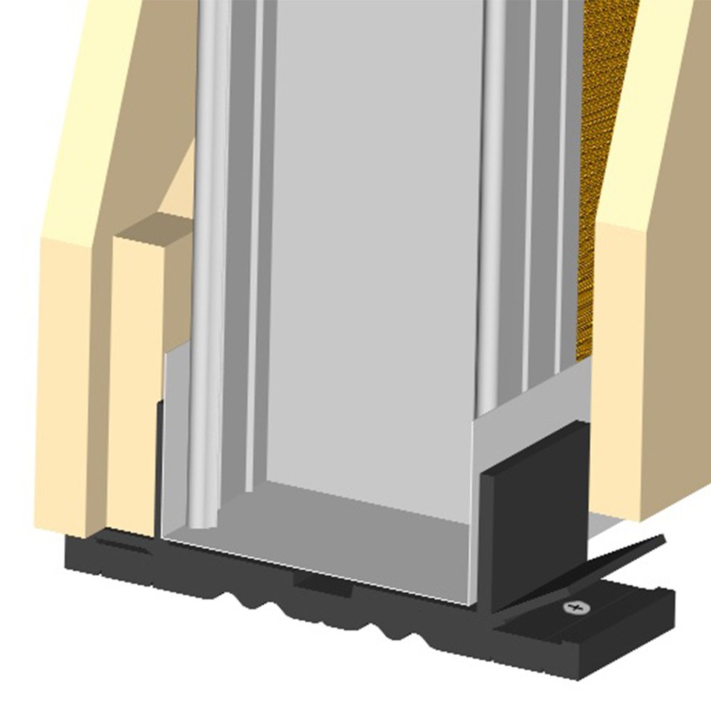 Los espacios libres debajo del marco de metal deben rellenarse con material de absorción de sonido (por ejemplo, lana de roca) y sellado con masilla elástica. porciones o todas las aletas laterales de la base, se pueden cortar fácilmente gracias a su incisiones, para aplicaciones con espesores más pequeños (por ejemplo, drywalls sencillos) que la longitud del soporte vibro WS.