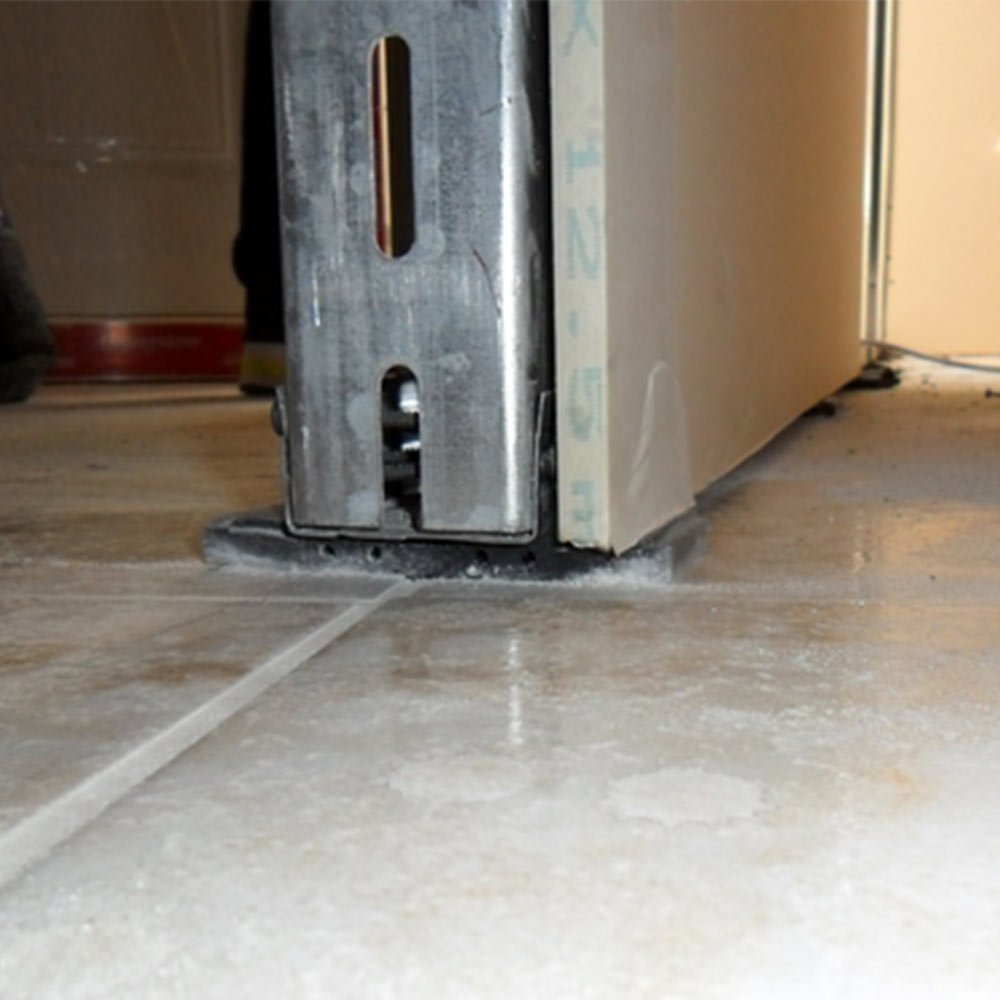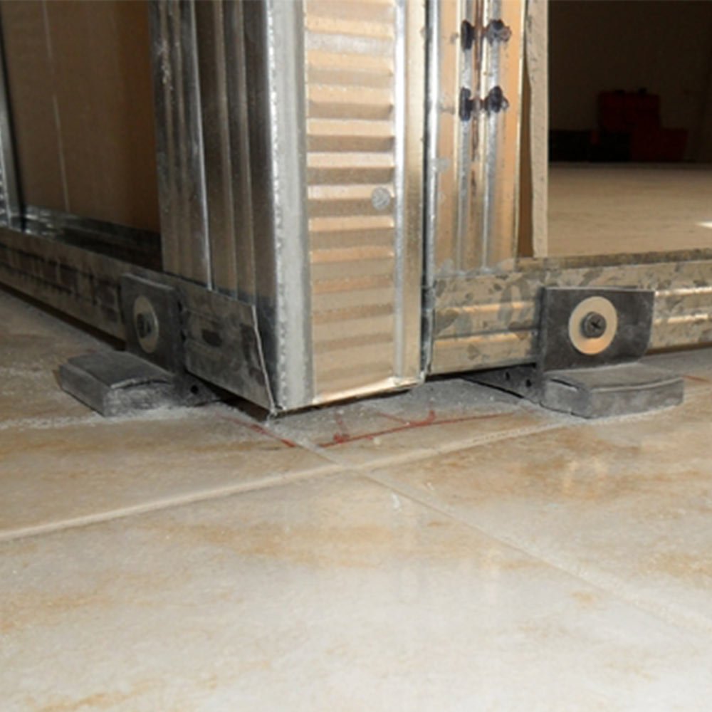 Vibro-WS son sistemas de soporte elastoméricos homogéneos especialmente diseñados para crear particiónes de drywall flotante. La modulación semicilíndrica en su base (para WS.75 y WS.100) y los orificios transversales (para WS.50), proporcionan el espacio necesario para la expansión del caucho, aumentar la deflexión y consecuentemente el aislamiento de vibraciones.Las aletas de láminas inclinadas de Vibro-WS cubren los pernos de fijación en la base y evitan sonido posible y puente térmico con el panel de yeso. Los Vibro-WS se instalan en perfiles metálicos de piso y techo (U-runer con ancho, 50, 75 o 100 mm) en correspondencia estos soportes de goma para pared deben aplicarse tanto en el piso como en el techo. En la conexión del techo con la pared flotante se pueden fijar a los perfiles metálicos con tornillos autoperforantes y en el suelo o en el techo con pernos de expansión.